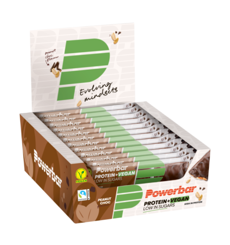 Nos 12 Barres Protein+ Vegan POWERBAR – 42g vous fournit de la protéine végétale sans avoir à faire de compromis sur le goût: une couche de protéine crémeuse et douce combinée à une délicate couche saveur caramel, noix et crispies croustillantes, disponible en 3 saveurs délicieuses : Salty Almond Caramel, Banana Chocolate et Peanut Choc.