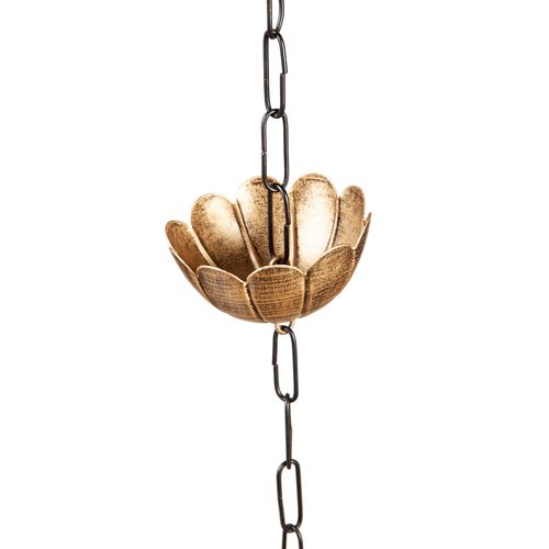 Des morceaux de métal en forme de fleur sont suspendus ensemble pour créer une magnifique chaîne de pluie qui allie style et fonctionnalité. Cette chaîne peut être suspendue à une gouttière pour détourner l’eau de pluie des maisons. Également bénéfique pour diriger l’eau vers les parterres de fleurs et plus encore. Écoutez les sons apaisants de la pluie qui tombe en cascade le long de la chaîne. Les chaînes de pluie dirigent harmonieusement l’écoulement de l’eau sans affecter l’attrait extérieur de la maison et sont tout aussi efficaces qu’un système de gouttière de descente pluviale.