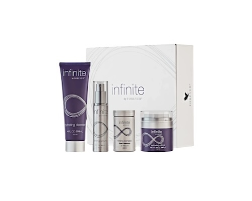[/et_pb_text][/et_pb_column][et_pb_column type= »2_3″ specialty_columns= »2″ _builder_version= »4.16″ custom_padding= »||| » global_colors_info= »{} » custom_padding__hover= »||| »][et_pb_row_inner _builder_version= »4.16″ _module_preset= »default » custom_padding= »||5px||| » global_colors_info= »{} »][et_pb_column_inner saved_specialty_column_type= »2_3″ _builder_version= »4.16″ _module_preset= »default » global_colors_info= »{} »][et_pb_text _builder_version= »4.16″ _module_preset= »default » text_orientation= »justified » global_colors_info= »{} »]Infinite by Forever est un soin anti-âge complet, adapté aux hommes et aux femmes. Cet ensemble contient quatre produits parfaitement coordonnés: un nettoyant hydratant, un sérum raffermissant, une crème réparatrice et un complexe raffermissant. Ce soin puissant aide à réduire l’apparition des ridules et des rides et donne une peau radieuse et hydratée.