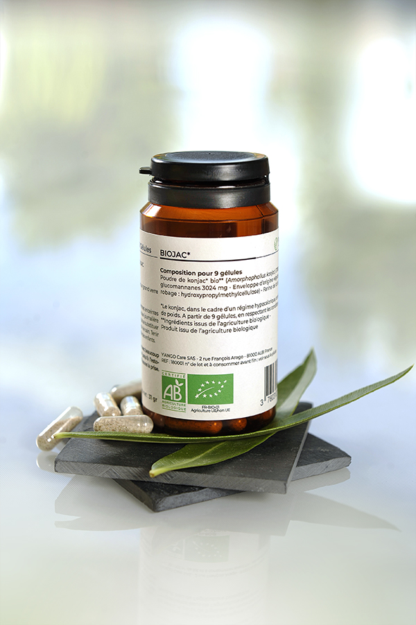 *Le Konjac, dans le cadre d’un régime hypocalorique, contribue à la perte de poids. A partir de 9 gélules, en respectant les conditions d’utilisation.