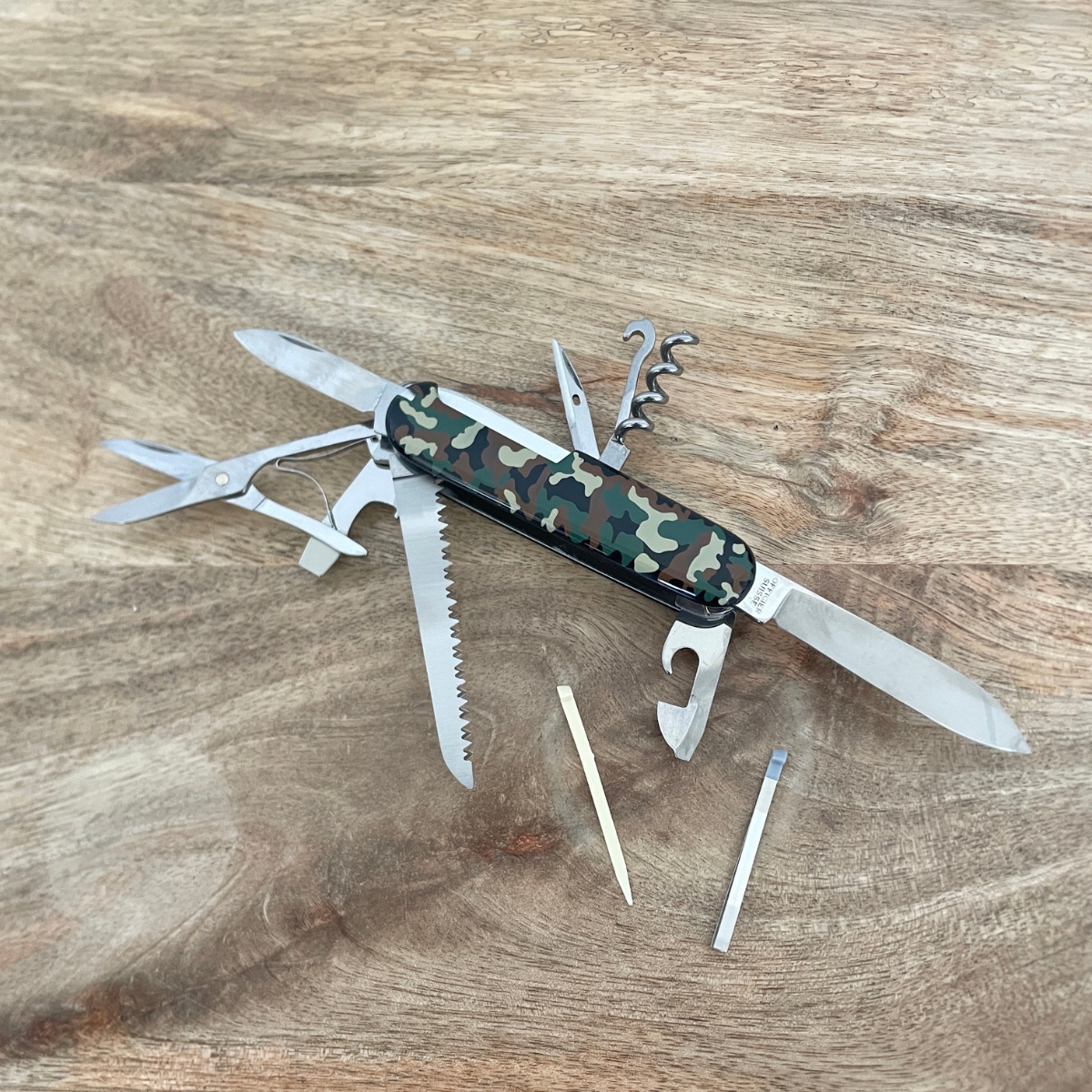 Polyvalent et robuste, le Couteau Suisse Huntsman Camouflage offre 15 outils dans un format compact. Idéal pour le camping, la randonnée et les réparations, il est parfait pour toutes les situations imprévues.