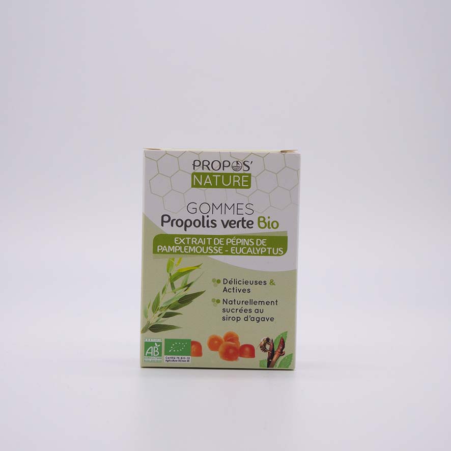 Les gommes Propos’Nature à la Propolis Bio, extrait de pépins de Pamplemousse et arôme naturel sont délicieuses et actives. Elles vous procurent une sensation de bien-être immédiate grâce à l’action de la Propolis, cet incroyable actif qui regorge d’atouts et qui nous restitue le meilleur de la nature.