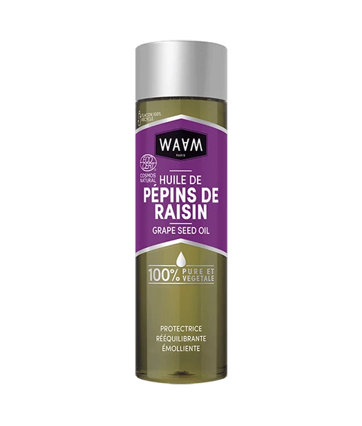 L’huile de pépins de raisin est en effet très appréciée pour ses nombreuses propriétés bénéfiques pour la peau et les cheveux :