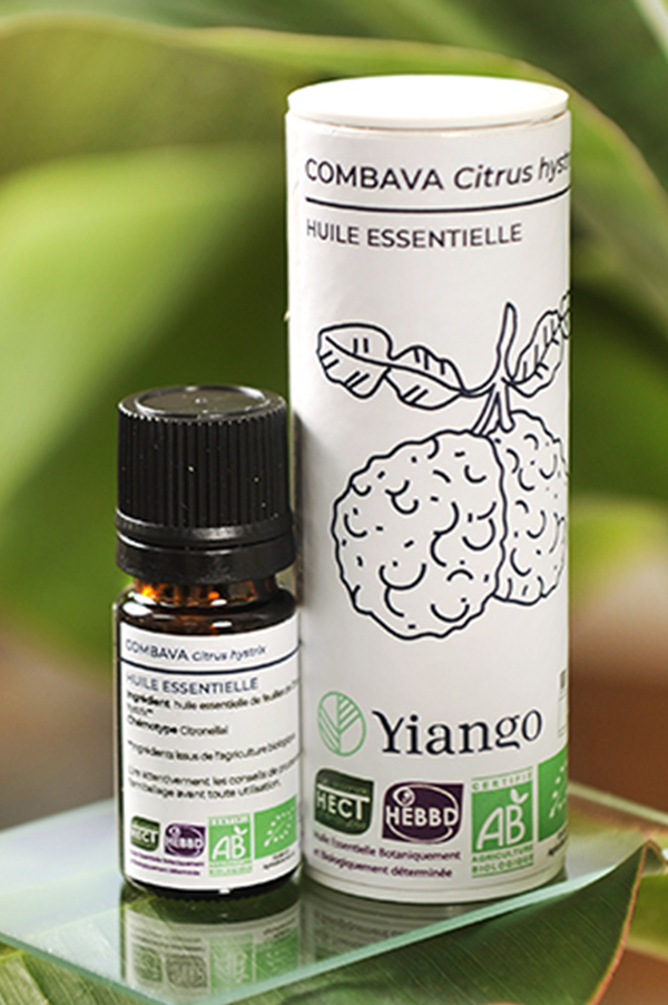 Synergies YIANGO : On peut associer l’HE de combava avec les HE de bergamote et de romarin à verbénone pour les troubles de l’attention et de la concentration (en perfusion aromatique)
