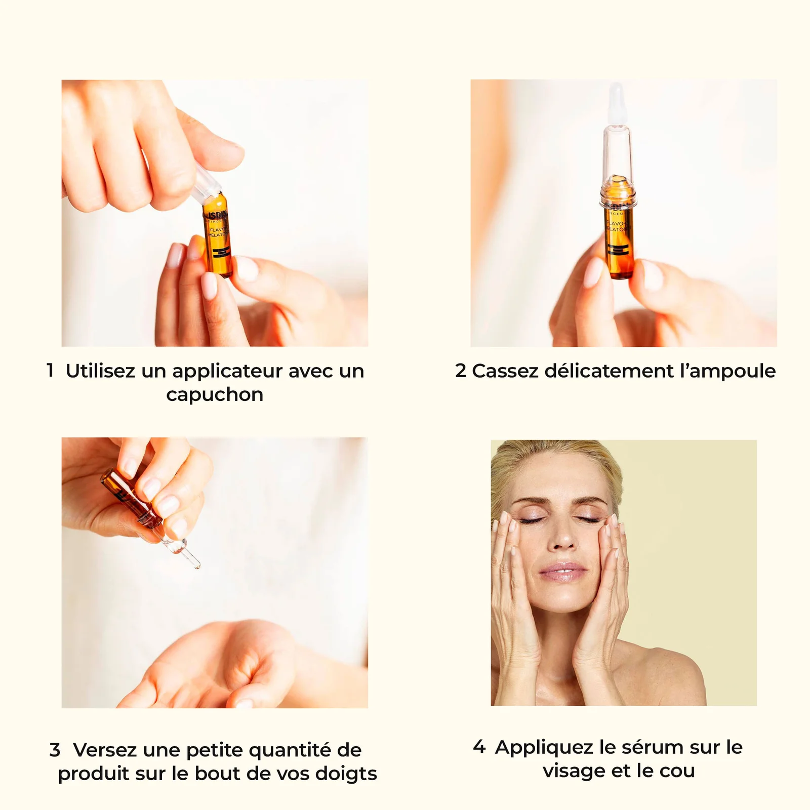 Agitez l’ampoule avant usage pour mélanger les ingrédients.