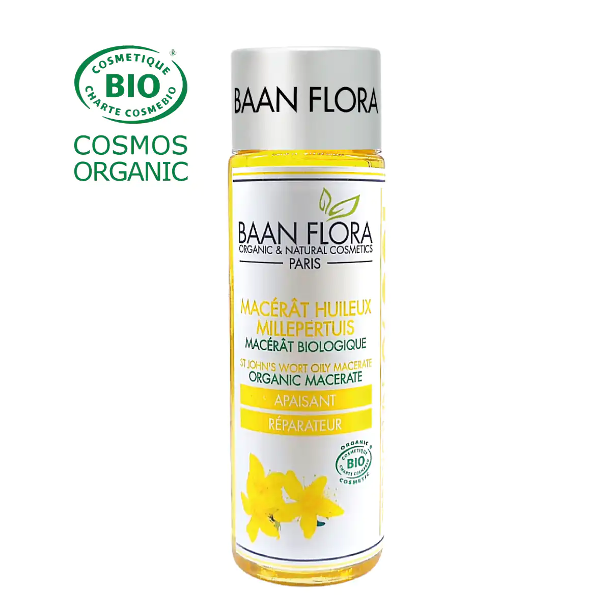 - Macérât de Calendula : Apaise et répare la peau, en complément des propriétés du millepertuis, pour une action renforcée sur les peaux abîmées.