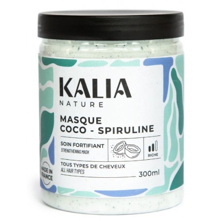 Le masque au beurre de coco et à la spiruline de la marque Kalia Nature est conçu pour nourrir et réparer la fibre capillaire en profondeur, afin de rendre les cheveux plus doux et plus brillants. Enrichi en beurre de coco et en spiruline, ce masque combine deux ingrédients naturels aux propriétés bénéfiques pour les cheveux.