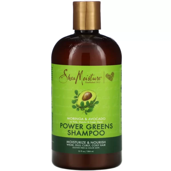 Le shampoing Power Greens de Shea Moisture, issu de la gamme Moringa & Avocado, est spécialement conçu pour nettoyer en douceur les cheveux déshydratés et privés de leurs huiles naturelles. Voici quelques points clés à retenir à propos de ce produit :
