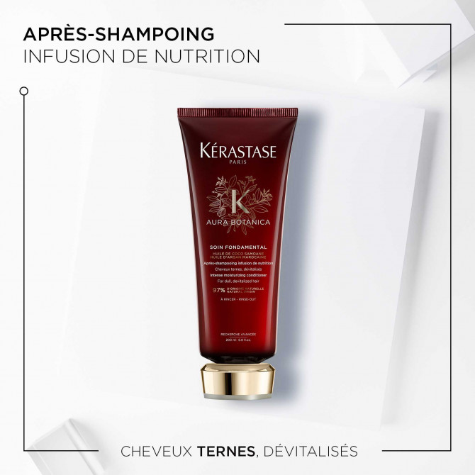 Le Soin Fondamental de Kérastase est un après-shampooing naturel nutritif conçu pour apporter une hydratation intense et une nutrition profonde aux cheveux. Voici quelques-unes de ses caractéristiques principales :
