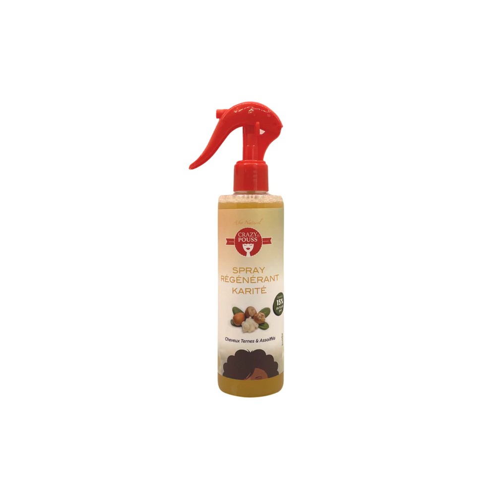 En résumé, le spray régénérant de la marque CRAZY POUSS est un allié idéal pour ceux et celles qui souhaitent redonner vie à leurs cheveux ternes et déshydratés, grâce à sa formule enrichie en beurre de karité et à son action revitalisante et hydratante.