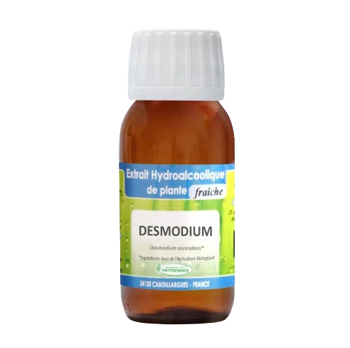 Le laboratoire L.A.P.H.T Phytofrance a développé cette teinture mère de desmodium, une formulation hydroalcoolique résultant du mélange de la plante fraîche de desmodium dans une solution alcoolique. Cette méthode permet d’extraire efficacement les principes actifs de la plante dans le but d’offrir une action efficiente et globale à l’organisme. Phytofrance veille à suivre un processus respectueux des principes de l’agriculture biologique, tant sur le plan matériel qu’énergétique, afin de préserver l’entièreté des bienfaits du desmodium, en évitant tout traitement pouvant altérer ses composants actifs.