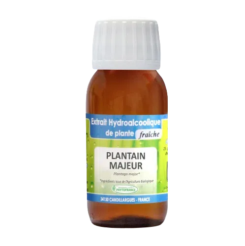 Le laboratoire L.A.P.H.T Phytofrance a développé cette teinture mère de plantain majeur, une formulation hydroalcoolique résultant du mélange de la plante fraîche de plantain majeur dans une solution alcoolique. Cette méthode permet d’extraire efficacement les principes actifs de la plante dans le but d’offrir une action efficiente et globale à l’organisme. Phytofrance veille à suivre un processus respectueux des principes de l’agriculture biologique, tant sur le plan matériel qu’énergétique, afin de préserver l’entièreté des bienfaits du plantain majeur, en évitant tout traitement pouvant altérer ses composants actifs.