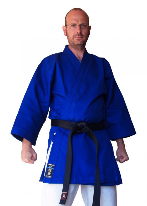 Découvrez le haut de kimono bleu de la marque KAMIKAZE