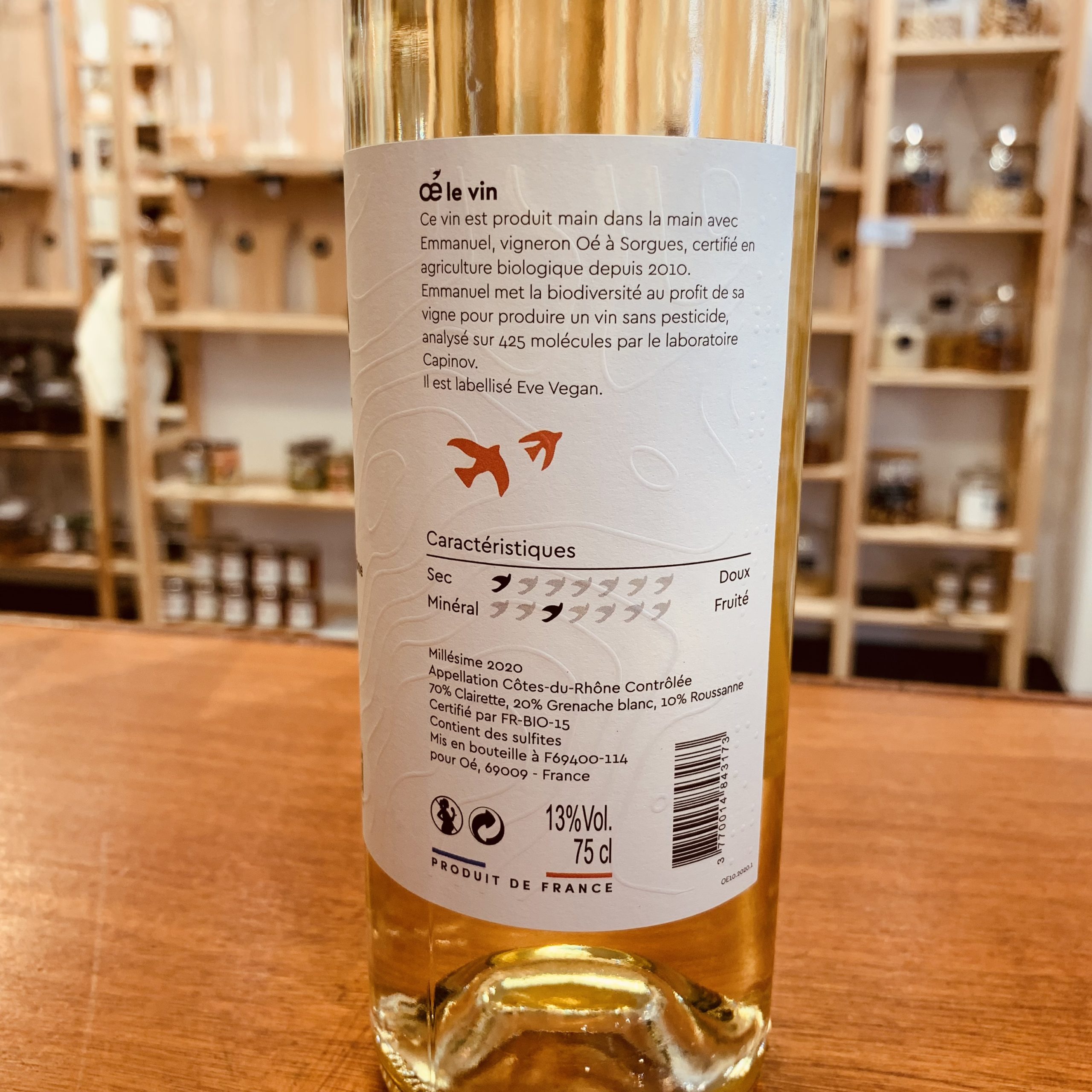 Vin blanc Oé – Le Côtes-du-Rhône – bio, engagé et consigné