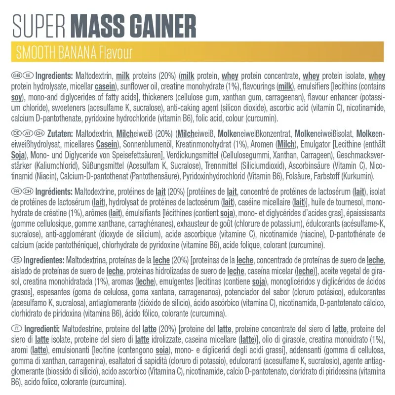 Poudre protéinée  Super Mass Gainer. Stimulez votre prise de masse.